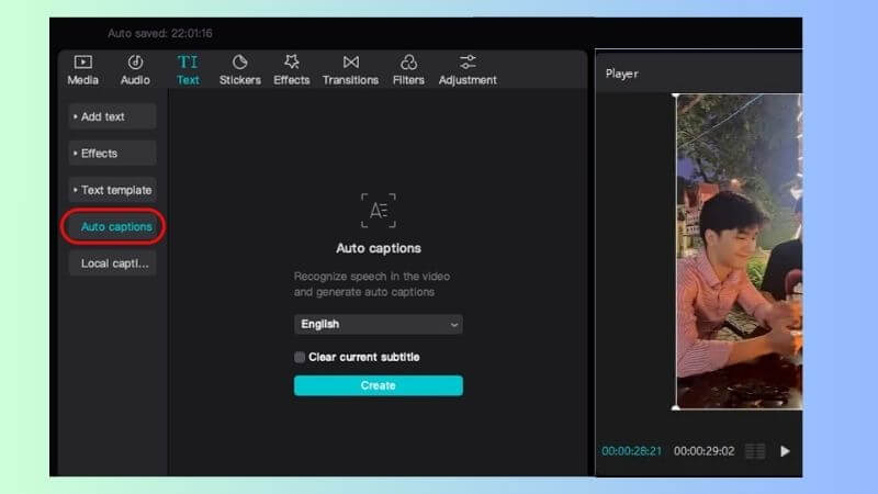 - Add auto-captions: Use the Auto Captions feature to generate subtitles. Choose a trending font style and add color highlights to key words.